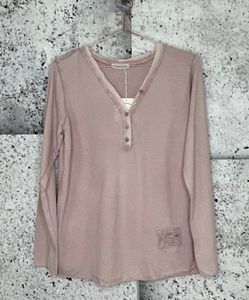 Fin trøye med v-utrigning og knapper i front. Den har lange gode ermer og en liten lapp / logo nederst foran.
