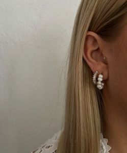 Søte øreringer i rustfritt stål og 14 karat gullbelegg med ferskvannsperler.